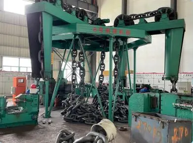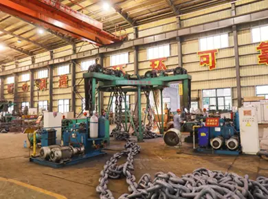 Fabrica are o linie de producție inteligentă de lider internațional de unități automate de fabricare a lanțurilor atât pentru lanțurile de ancorare a navei, cât și pentru lanțurile de acostare a ingineriei offshore, cu echipamente complete pentru testarea fizică și chimică a produselor și centrelor de cercetare și dezvoltare. Este capabil să producă lanțuri de ancorare U2 și U3, studded și neîngrijite, cu diametre cuprinse între 14 mm și 122 mm, precum și lanțuri de acostare a ingineriei offshore și diverse accesorii care susțin lanțurile de ancorare menționate anterior, în conformitate cu standardele internaționale ISO1704 și național GB/T549-2017.Wew Wewwe a obținut certificate de lucrări GB/T549-2017.we Societăți de clasificare renumite: China (CCS), Regatul Unit (LR), Norvegia (DNV), Statele Unite (ABS), Franța (BV), Japonia (NK), Coreea de Sud (KR), Italia (Rina) și Rusia (RS). Suntem un produs faimos de brand în Zhoushan City, cu o producție anuală de 50.000 tons.